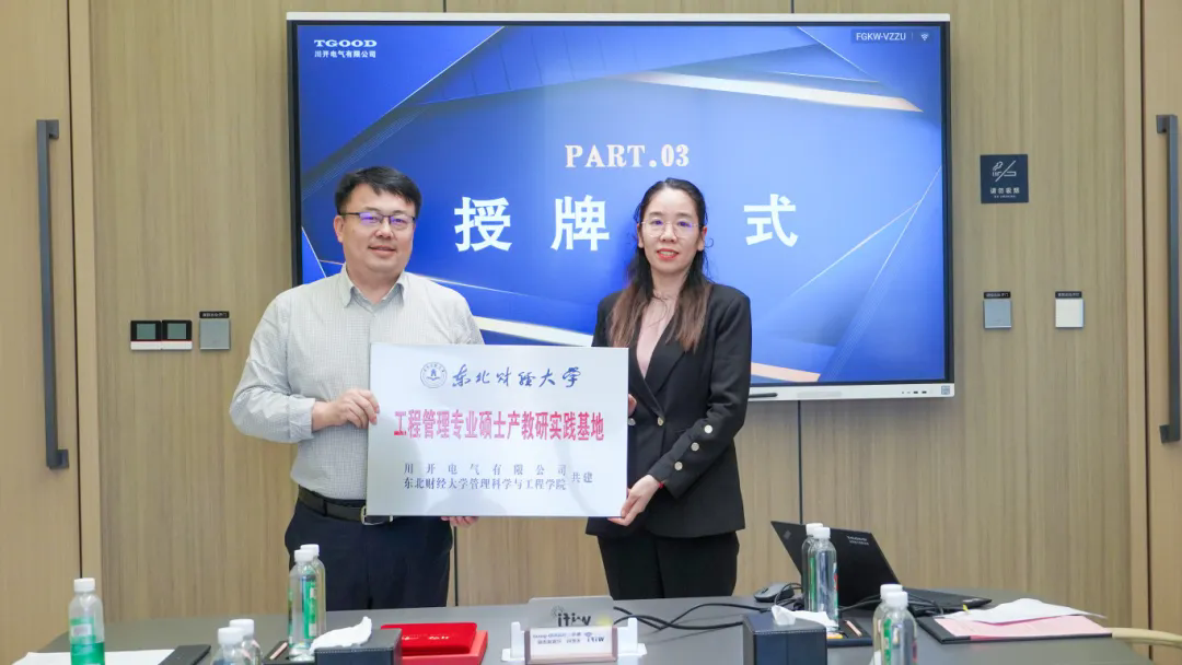 隨后,在全體參會人員的見證下,會議舉行了“東北財經(jīng)大學實踐教學基地”授牌儀式與MEM校外指導老師聘任儀式。特銳德川開電氣榮獲東北財經(jīng)大學實踐教學基地授牌,并聘任公司黨委書記、副董事長邢志剛為MEM校外指導老師。
