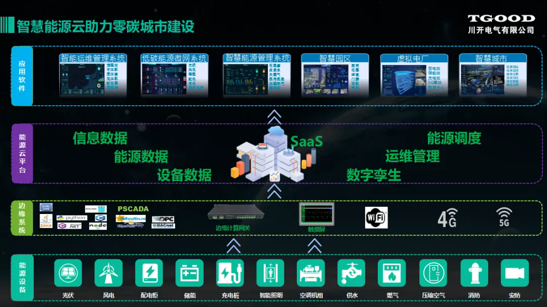 特銳德川開電氣特智匯低碳能源云深度融合“物聯(lián)網(wǎng)+”智能變配電、智慧運維、智慧能源技術(shù),架設(shè)了以應(yīng)用為引領(lǐng)的“云網(wǎng)邊端”五層架構(gòu)的軟件系統(tǒng),配套基于電氣源荷特性的200余種微型智能感知設(shè)備的智能配電設(shè)備的硬件系統(tǒng),部分技術(shù)達到國際先進水平。特智匯低碳能源云已應(yīng)用新能源場站微電網(wǎng)、工業(yè)產(chǎn)業(yè)園微電網(wǎng)和電動汽車充放電網(wǎng)等生產(chǎn)生活場景,實施中用戶綜合能耗節(jié)約33.23%,標準煤減排631.14噸。