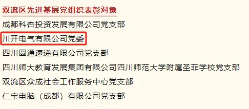 今年是中國共產(chǎn)黨成立103周年,為進(jìn)一步激勵各級黨組織和廣大黨員干部奮勇爭先、建功立業(yè),省委、市委、區(qū)委分別決定,表彰一批優(yōu)秀共產(chǎn)黨員、優(yōu)秀黨務(wù)工作者和先進(jìn)基層黨組織。其中,中共川開電氣有限公司委員會榮獲雙流區(qū)先進(jìn)基層黨組織。