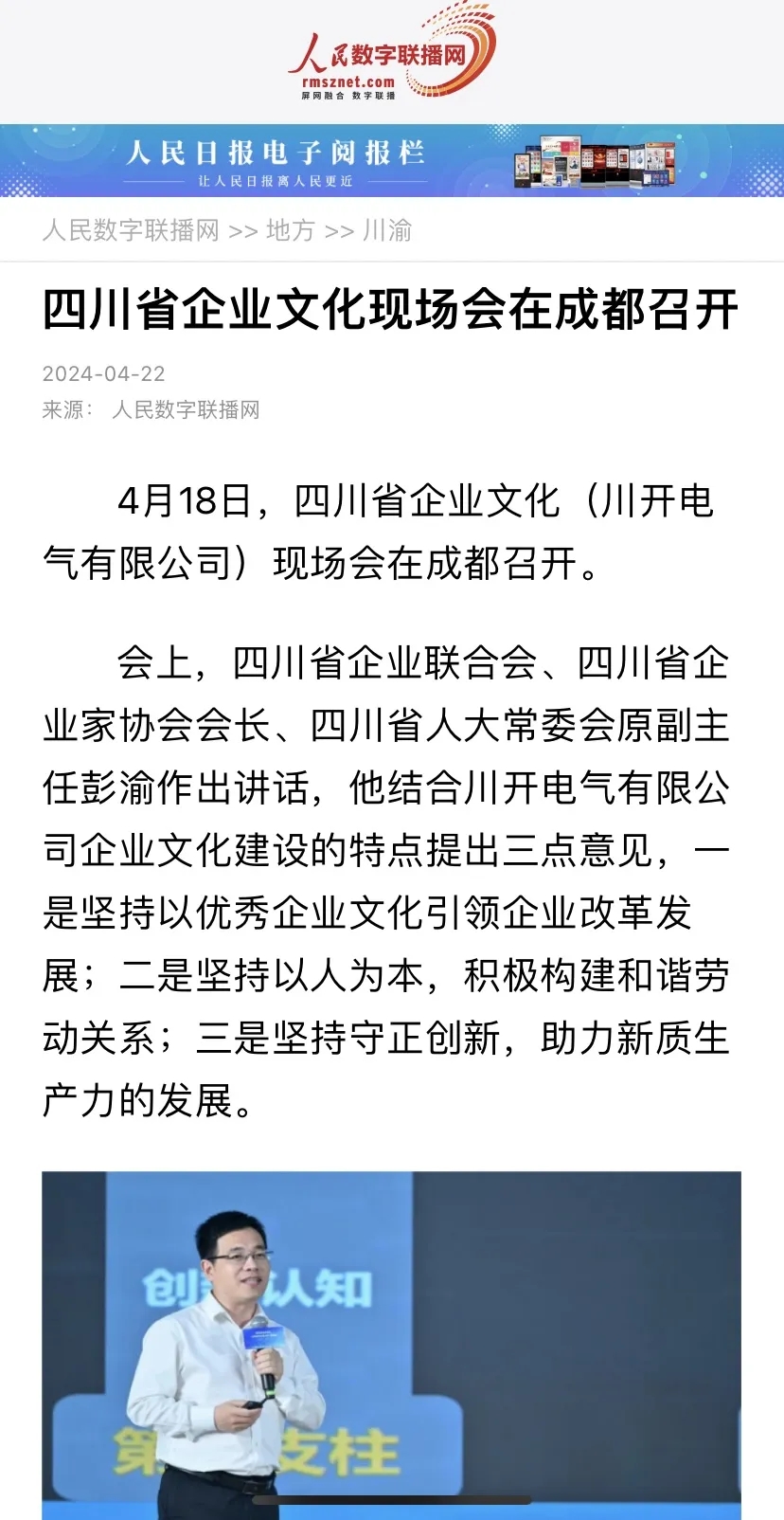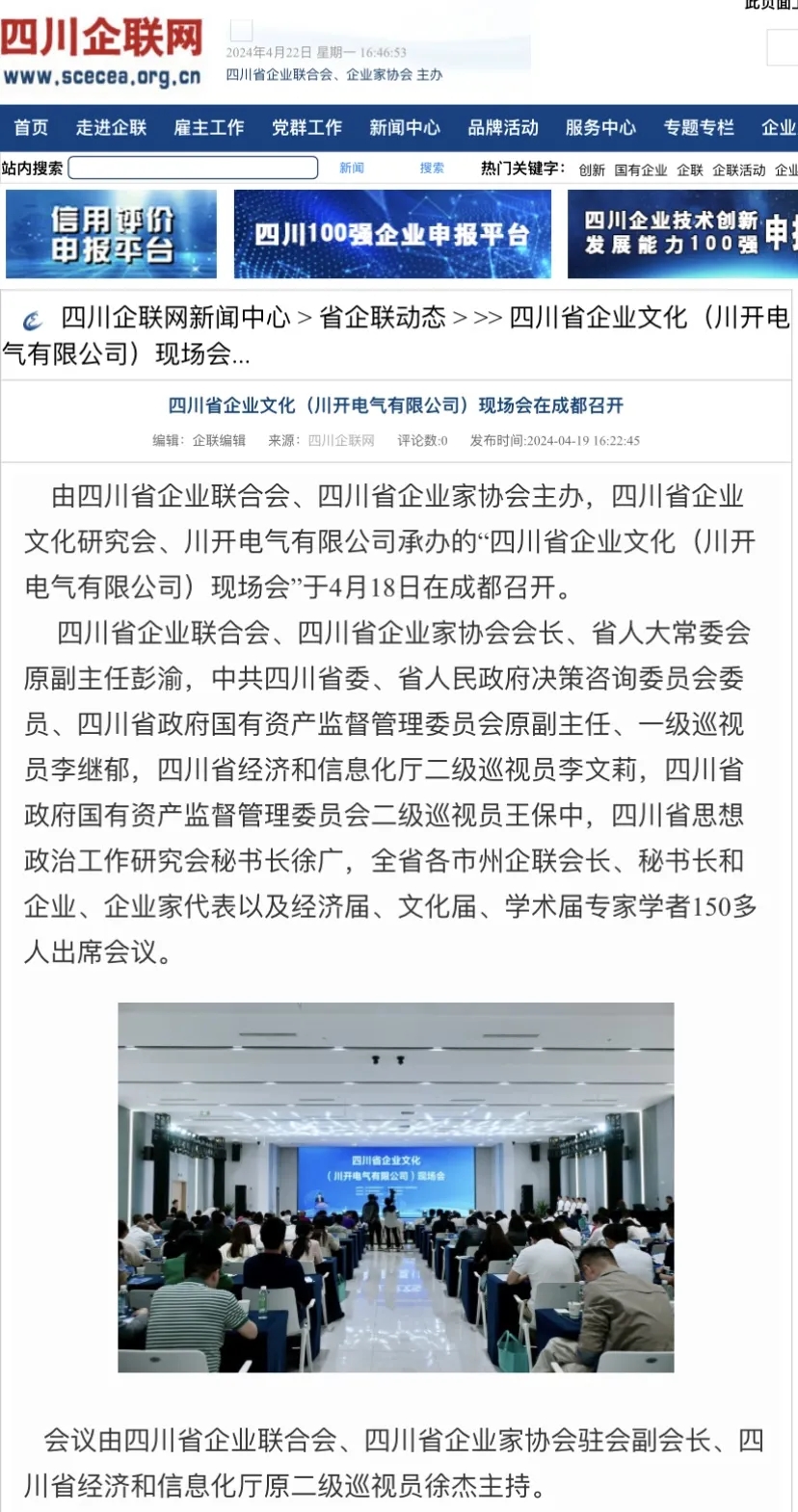 作為推進四川省企業(yè)文化建設(shè)與企業(yè)高質(zhì)量發(fā)展盛會,4月18日,四川省企業(yè)文化(川開電氣有限公司)現(xiàn)場會成功舉行。本次大會吸引了全國多家主流媒體宣傳報道,聚焦推廣四川企業(yè)文化“優(yōu)秀樣板”,取得了影響范圍廣、傳播熱度高等成效。