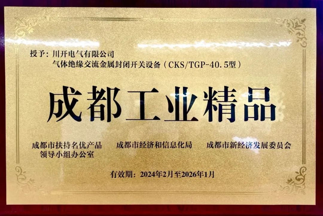 會上,100家企業(yè)的100個(gè)產(chǎn)品經(jīng)過層層篩選,被評選為“成都工業(yè)精品”,以“成都智造”新名片的名義正式面向全球發(fā)布,涵蓋5大支柱產(chǎn)業(yè)、14個(gè)重點(diǎn)產(chǎn)業(yè)鏈、17個(gè)細(xì)分賽道、4個(gè)制造業(yè)單項(xiàng)冠軍以及41個(gè)國家級“專精特新”小巨人企業(yè)。其中,特銳德川開電氣的氣體絕緣交流金屬封閉開關(guān)設(shè)備(CKS/TGP-40.5型)入選第一批“成都工業(yè)精品”名單并正式榮獲授牌。