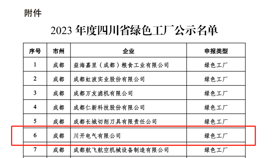 近日,四川省經(jīng)濟(jì)和信息化廳公示了2023年度四川省綠色制造名單,其中,特銳德川開電氣正式獲評(píng)“2023?年度四川省綠色工廠”。