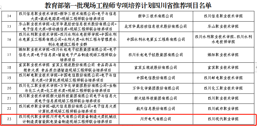 近日,特銳德川開電氣與四川現(xiàn)代職業(yè)學(xué)院裝備制造大類機械設(shè)計制造類智能配電裝備制造現(xiàn)場工程師聯(lián)合培養(yǎng)項目成功入選四川省第一批現(xiàn)場工程師專項培養(yǎng)計劃項目和教育部第一批現(xiàn)場工程師專項培養(yǎng)計劃四川省推薦項目名單。