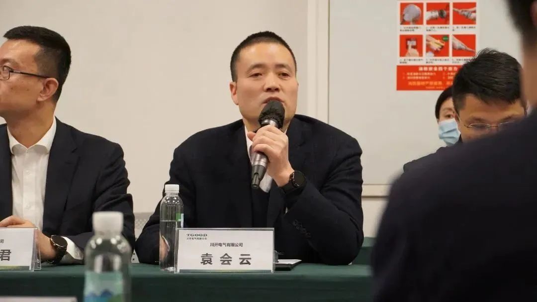 袁會云副董事長對來賓一行的到訪表示歡迎,對中國人民銀行和中國工商銀行長期以來給予的支持表示感謝,回顧過去的合作歷程,雙方開展了一系列富有成效的合作,建立了良好的合作機(jī)制,希望通過這次調(diào)研交流,務(wù)實推進(jìn)互利共贏。周君總經(jīng)理介紹了川開電氣生產(chǎn)經(jīng)營狀況及2023年發(fā)展目標(biāo)等情況,并對公司輸配電產(chǎn)業(yè)各環(huán)節(jié)競爭優(yōu)勢作進(jìn)一步剖析。張愛寶副總經(jīng)理分享了川開電氣在建圈強(qiáng)鏈方面的具體成績,作為鏈主企業(yè)為供應(yīng)鏈企業(yè)提供多元服務(wù),發(fā)揮帶動上下游中小微企業(yè)協(xié)同發(fā)展,凝聚形成產(chǎn)業(yè)生態(tài)。