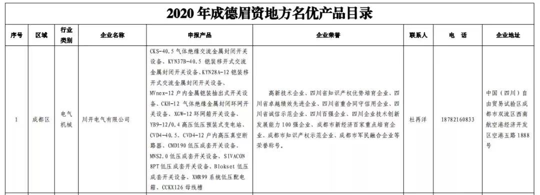 ? ? ? 為抓住新一輪成都經(jīng)濟(jì)發(fā)展帶來的機遇,融入以國內(nèi)大循環(huán)為主體、國內(nèi)國際雙循環(huán)相互促進(jìn)的新發(fā)展格局,進(jìn)一步推動成德眉資地方名優(yōu)產(chǎn)品集群發(fā)展,提升工業(yè)企業(yè)產(chǎn)品市場競爭力,實現(xiàn)工業(yè)強基戰(zhàn)略。經(jīng)成都市經(jīng)濟(jì)和信息化局批準(zhǔn),《2020年成德眉資地方名優(yōu)產(chǎn)品目錄》于11月11日公開發(fā)布,我司——川開電氣有限公司的優(yōu)質(zhì)產(chǎn)品榮耀上榜。