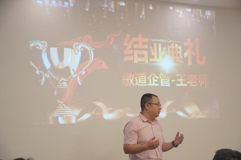 在楊總之后,由敏道企管王明老師進(jìn)行了講話,王明老師提到人都需要有夢(mèng)想去支撐未來,我們學(xué)習(xí)的最終目的都是要將其變成自己的東西,最好的學(xué)習(xí)方法是理論加上實(shí)操的結(jié)合,因此結(jié)業(yè)典禮之后就需要各位班組長(zhǎng)將課堂上學(xué)習(xí)的理論知識(shí)運(yùn)用到實(shí)際工作中去。