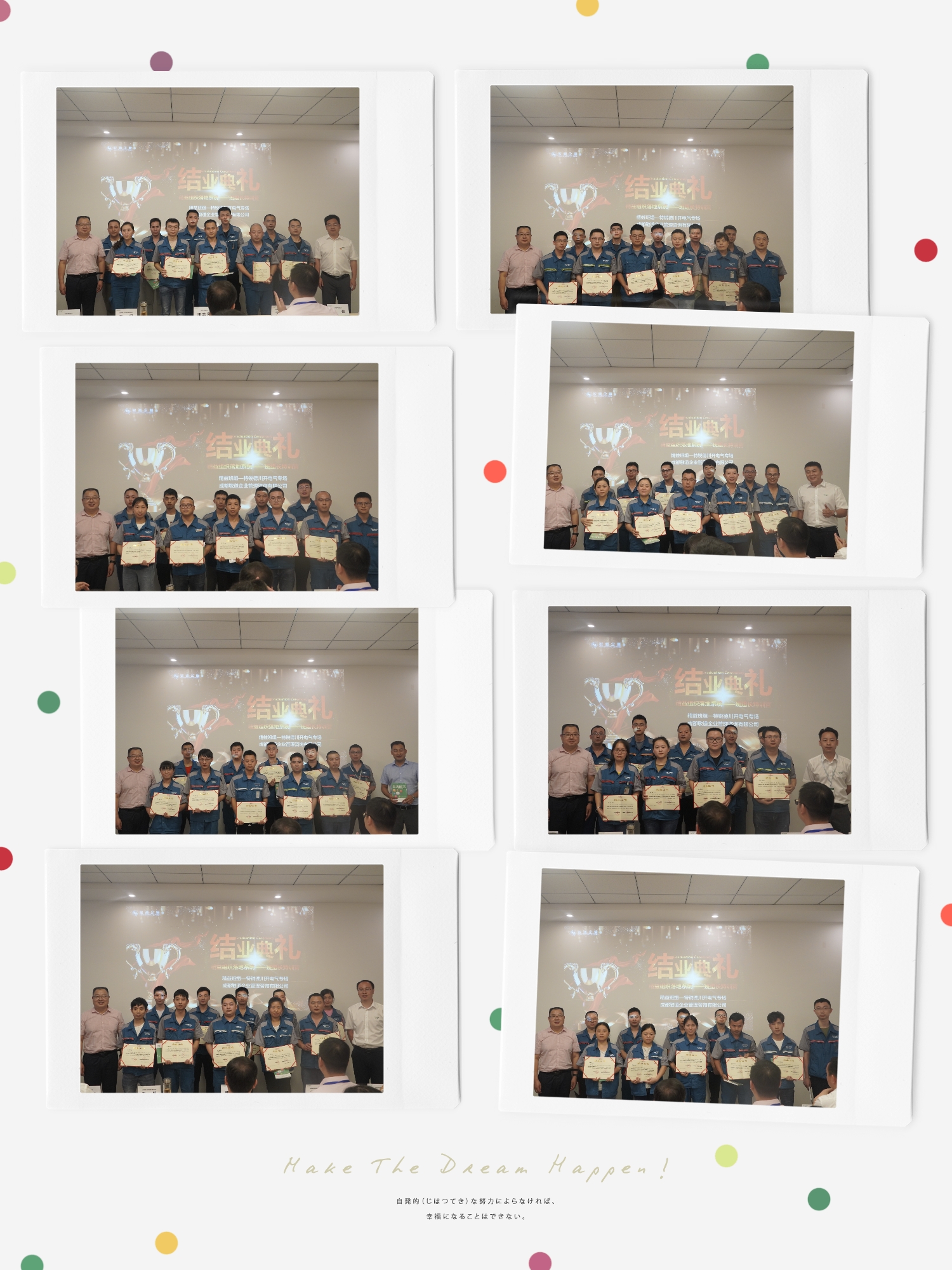 班組長(zhǎng)結(jié)業(yè)典禮圓滿結(jié)束了,但我們學(xué)習(xí)的腳步永遠(yuǎn)不會(huì)停止,希望各位班組長(zhǎng)將系統(tǒng)的理論結(jié)合實(shí)踐運(yùn)用在實(shí)際工作中,真正提高現(xiàn)場(chǎng)精益化管理水平,一起為實(shí)現(xiàn)公司五年七十億的目標(biāo)而努力!