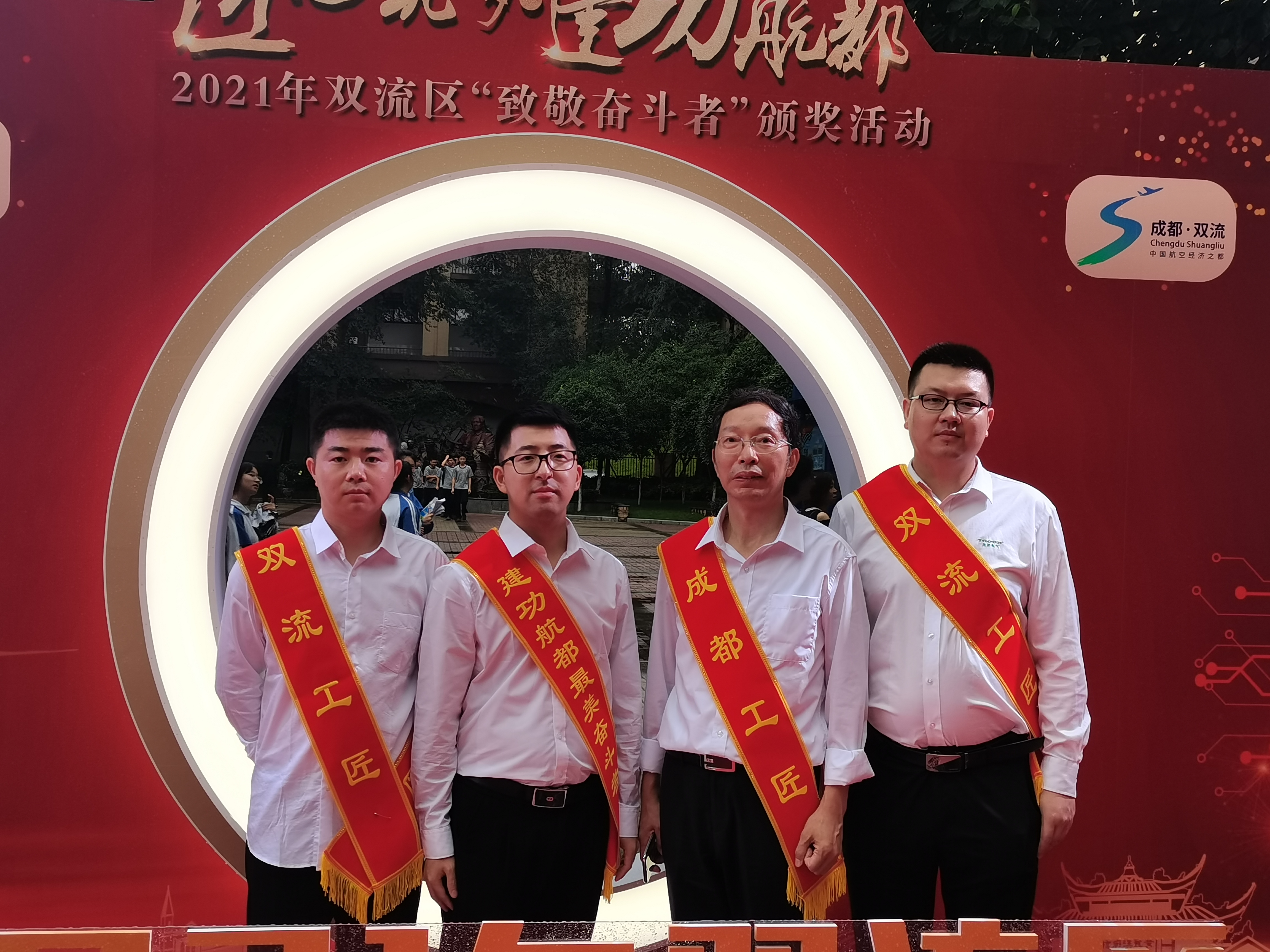 頒獎(jiǎng)活動(dòng)上,少先隊(duì)員為2021年“雙流工匠”、2021年雙流區(qū)“建功航都最美奮斗者”頒發(fā)榮譽(yù)證書。川開電氣有限公司雷智平、喬曦和吳小虎等3名同志榮膺“雙流工匠”稱號(hào),公司董事長李軍和馮驥等2名同志榮獲“建功航都最美奮斗者”稱號(hào)!