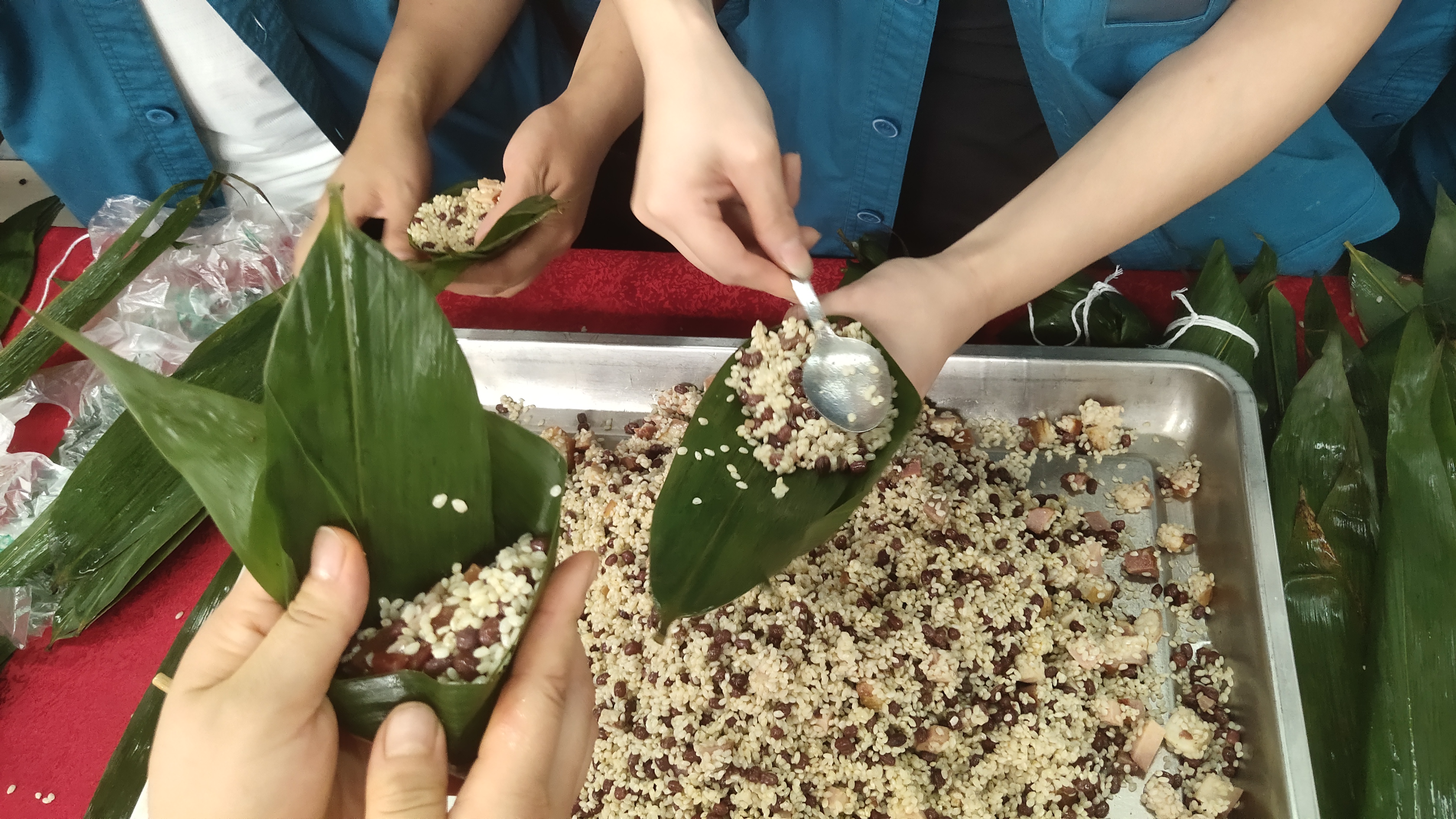 此次活動(dòng)吸引了來(lái)自各個(gè)部門(mén)60多位戰(zhàn)友前來(lái)參加,通過(guò)食堂2名廚師的指導(dǎo),大家基本了解了包粽子的一些技巧。比賽采取五分鐘記時(shí)比賽,在規(guī)定的五分鐘內(nèi),完成5個(gè)(不含)以上粽子的參賽人員經(jīng)核實(shí)后將獲得精美禮品一份。