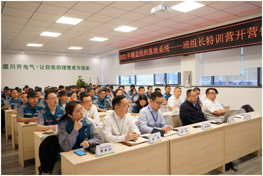 為了推動(dòng)企業(yè)班組建設(shè),提高基層管理人員綜合技能,促進(jìn)現(xiàn)場(chǎng)精益化管理,川開(kāi)電氣有限公司聯(lián)合成都敏道企業(yè)管理咨詢有限公司共同開(kāi)展了精益班組培訓(xùn)項(xiàng)目,并于2021年5月7日早上8:30在B8會(huì)議室舉辦了班組長(zhǎng)特訓(xùn)營(yíng)開(kāi)營(yíng)儀式。成都敏道企業(yè)管理咨詢有限公司創(chuàng)始人、精益組織落地系統(tǒng)總教練王明老師,駐廠教練李松和曾永川老師,班主任李洋老師,以及公司總經(jīng)理邢志剛、常務(wù)副總經(jīng)理?xiàng)罱?、副總?jīng)理?xiàng)罾?、副總?jīng)理賈倫、人力資源部經(jīng)理裴曉霜、供應(yīng)鏈管理部經(jīng)理逯雨港、低壓運(yùn)營(yíng)部經(jīng)理吳明永、中壓運(yùn)營(yíng)部經(jīng)理韋斌、金加工運(yùn)營(yíng)部經(jīng)理張鴻、三箱事業(yè)部經(jīng)理張彬、箱變事業(yè)部電氣主管王浩宇和學(xué)員共95人參會(huì)。