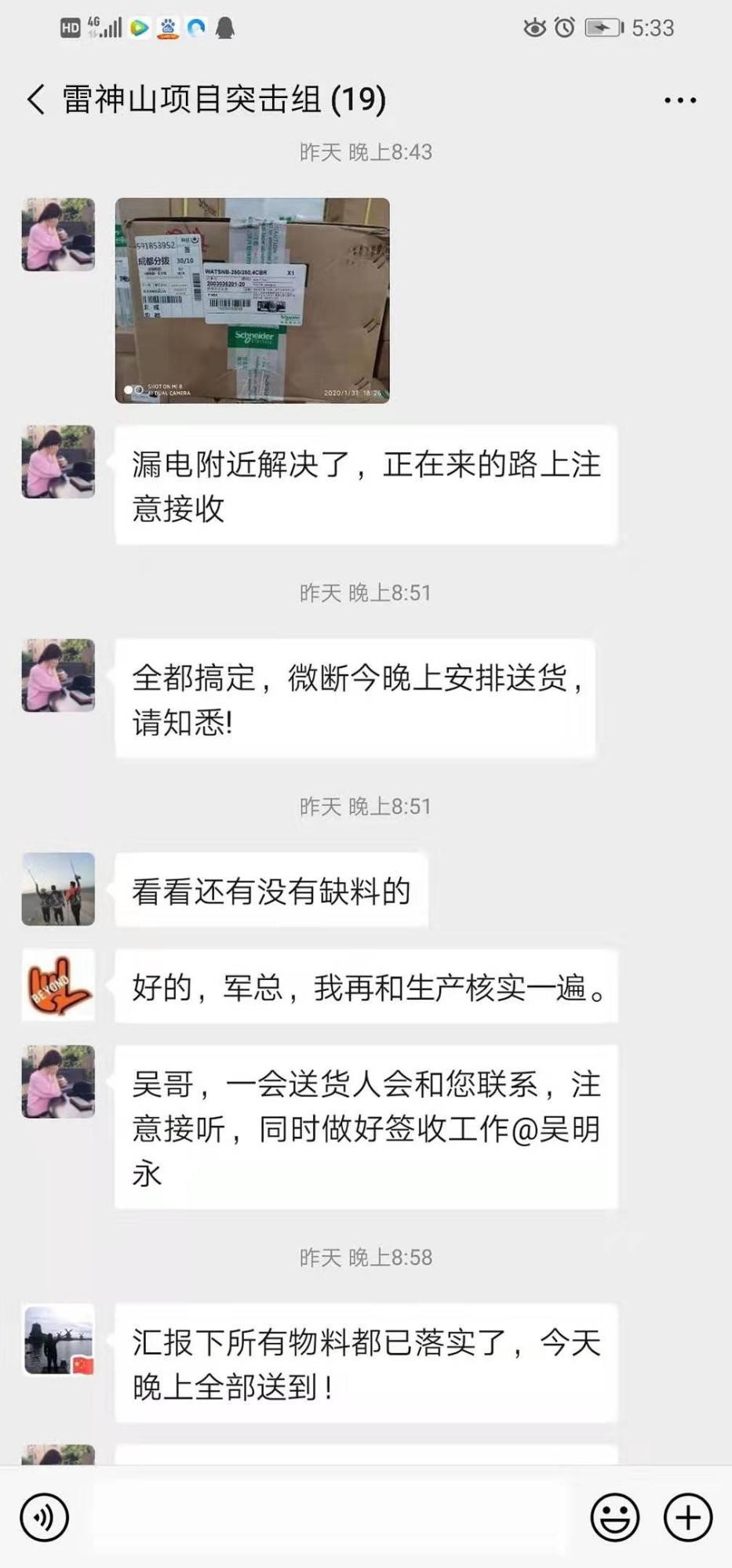在這場戰(zhàn)疫中,特銳德.川開電氣沒有掉隊!我們齊心協(xié)力,科學組織,與時間賽跑,跑出了特銳德.川開電氣人的新速度!我們的合作伙伴:施耐德公司、成都眾業(yè)達、成都高威新潮公司也紛紛為助力“雷神山”突擊項目全力配合,貢獻力量。客戶的鼎力支持也讓我們深受感動,倍受鼓舞。為支持項目如期完成,天府機場、成都地鐵、昆明地鐵等客戶單位在我們向他們說明情況,需拆借以上項目待發(fā)貨設備部分物料時,都第一時間給予我們肯定并全力支持。致敬我們的客戶!