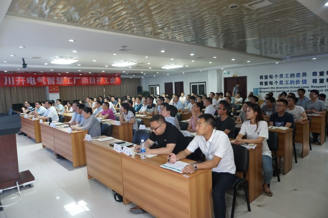 會議第一項,由川開電氣副總經(jīng)理邢志剛對項目團(tuán)隊進(jìn)行現(xiàn)場任命。邢總指出智慧工廠項目時間緊、任務(wù)重,如何保證項目的順利進(jìn)行需要我們大家共同努力,這將是一場沒有硝煙的戰(zhàn)爭,原有經(jīng)驗可能會是我們前進(jìn)的絆腳石,我們必須跳出原有思維模式,接受新的管理模式和生產(chǎn)模式,才會不斷提升和重塑自我,進(jìn)而推進(jìn)川開電氣的不斷進(jìn)步。