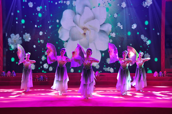 舞蹈《茉莉花》花開艷麗,一團一簇美輪美奐,霧氣繚繞,霓虹溢臺,氤氳出節(jié)目的開端。