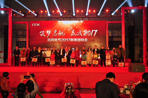 在《相親相愛》樂曲中,川開電氣董事長簡興福先生及公司領導舉起吉祥祝福的美酒為“川開電氣2017年新春團拜會”劃上了圓滿的句號。這濃濃的年味凝聚著川開人最真摯的情感,碰杯的脆響堅定著川開大家庭和睦、團結,凝聚著力量!