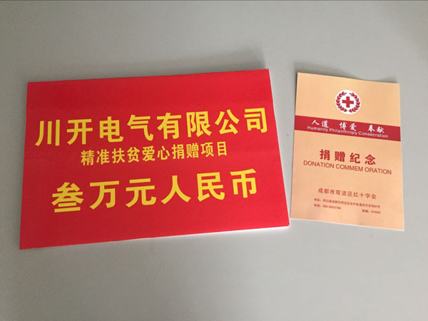 川開電氣有限公司作為雙流區(qū)企業(yè)代表參與了此次愛心捐贈儀式,并為需要幫扶的貧困家庭捐助了三萬元愛心善款。川開電氣始終踐行為社會貢獻自己的力量,履行社會責任。