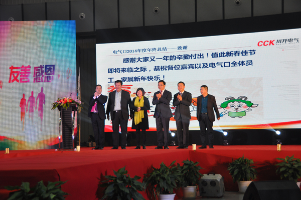 集團(tuán)董事長簡興福首先發(fā)表了熱情洋溢的新春致辭,表達(dá)了對各個公司未來的美好祝愿和對全體員工的新春祝福;王洪總裁也發(fā)表了對電氣口這次團(tuán)拜會的祝賀。最后電氣口總經(jīng)理袁會云做了2014年度電氣口工作總結(jié)。