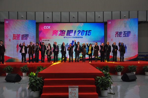 最后,由川開集團(tuán)公司領(lǐng)導(dǎo)及電氣口管委會成員一起舉杯,讓我們告別2014,向2015努力奔跑。