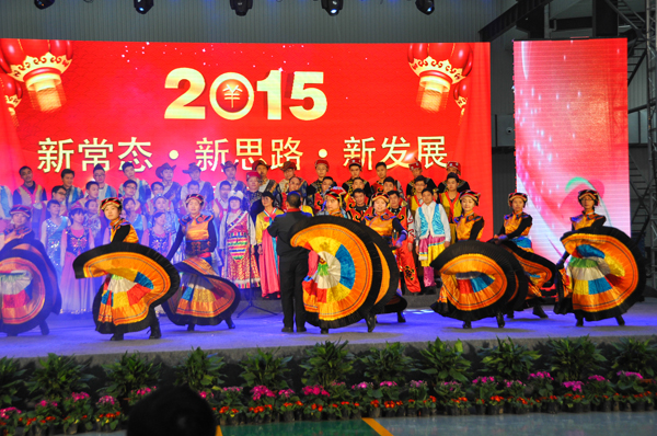 “駿馬辭歲回首歷程上下齊心笑迎挑戰(zhàn),瑞羊迎春展望前景攻堅克難再創(chuàng)佳績”,12月30日下午2點,以“新常態(tài)新思路 新發(fā)展”為主題的2015年迎新春慶元旦文藝演出聯(lián)歡活動在公司精彩舉行。全集團干部職工一千余人歡聚一堂,一起分享由集團黨委、集團工會、集團公司精心組織籌備、各公司傾力奉獻的文化盛宴。川開人載歌載舞喜迎2015年新年的到來??h總工會領導、協(xié)和街道工會領導應邀出席,現(xiàn)場感受了工會組織對川開企業(yè)文化建設的付出取得的成果。