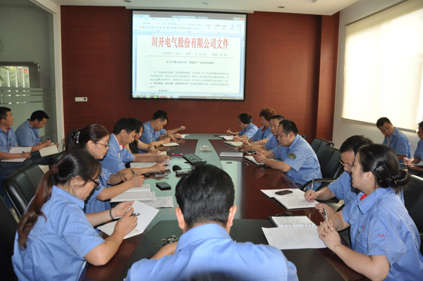 2013年8月30日下午三點,以“提升質量、追求卓越、共建百年川開”為主題的川開電氣第4個“質量月”活動正式啟動。電氣公司管委會領導及各部門負責人、電氣口西明電力質量(生產(chǎn))負責人及阿?,m公司質量(生產(chǎn))負責人參加了動員大會。
