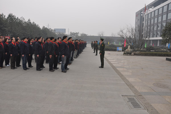 ??? 為讓全體員工充分體會(huì)公司企業(yè)文化理念,培養(yǎng)員工吃苦耐勞精神,加強(qiáng)組織紀(jì)律性和團(tuán)隊(duì)合作精神,增強(qiáng)員工對(duì)公司的忠誠(chéng)度和歸屬感和集體凝聚力,川開電氣股份有限公司特邀請(qǐng)成都武警指揮學(xué)院的優(yōu)秀教官,組織所有員工進(jìn)行軍訓(xùn)。集團(tuán)總裁王洪先生、公司總經(jīng)理李軍先生在開幕式上作軍訓(xùn)動(dòng)員。