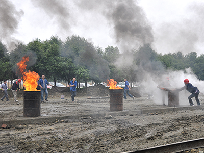 ??? 通過近一個小時理論培訓(xùn),參訓(xùn)人員對消防演習(xí)的注意事項、滅火器材的使用、滅火的要點有了一個大致了解。藉此,參訓(xùn)人員進(jìn)行了實地操作演習(xí)。參訓(xùn)人員紛紛拿起了滅火器,按照培訓(xùn)要求進(jìn)行實地操作。燃燒著大火的大油桶、小油桶、枯樹堆迅速被撲滅。培訓(xùn)和演習(xí)取得了良好的效果。