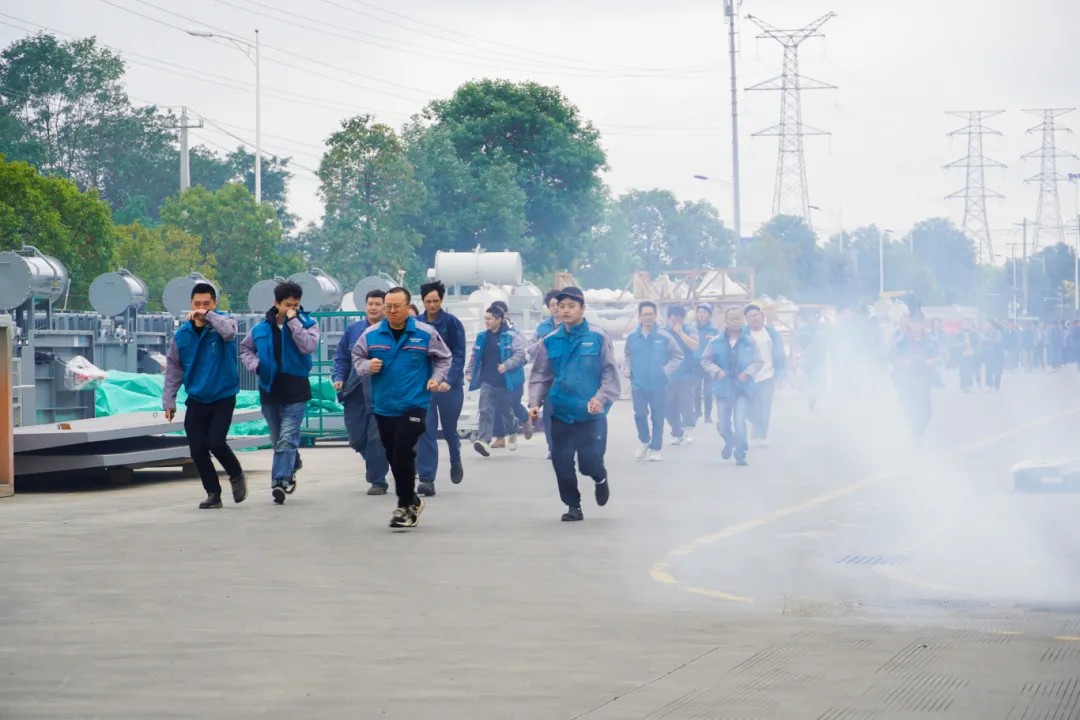 在警報(bào)聲中,全體員工立即在各區(qū)域安全引導(dǎo)員的統(tǒng)一指揮下,按照預(yù)設(shè)疏散路線(xiàn)快速有序撤離。大家俯身低姿,捂住口鼻,沿著清晰的疏散指示標(biāo)識(shí)穿過(guò)模擬濃煙區(qū)域,整個(gè)過(guò)程緊張而不慌亂,迅速而有序。本次演練總計(jì)用時(shí)14分33秒,全體員工安全抵達(dá)指定的緊急疏散集合點(diǎn),完成了從險(xiǎn)情發(fā)生到全員撤離的全流程演練。