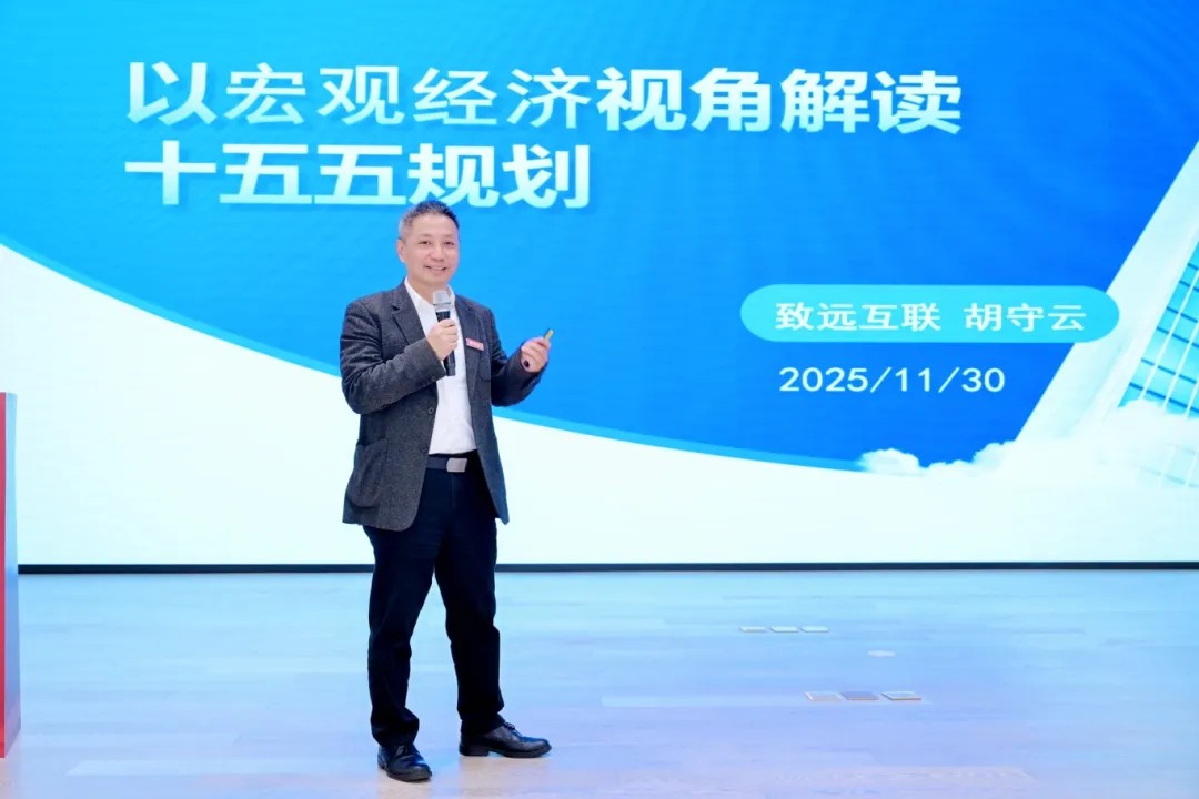 在主題演講環(huán)節(jié)中,北京致遠(yuǎn)協(xié)創(chuàng)軟件有限公司副總裁、北大EMBA89班校友胡守云進(jìn)行了《以宏觀經(jīng)濟(jì)視角解讀十五五規(guī)劃》為題的演講。他深入解析了“十五五”發(fā)展時(shí)期的國(guó)際環(huán)境及國(guó)內(nèi)面對(duì)的主要問題,并以規(guī)劃背景與關(guān)鍵目標(biāo)、規(guī)劃中的經(jīng)濟(jì)發(fā)展和關(guān)鍵任務(wù)為切入點(diǎn),就產(chǎn)業(yè)發(fā)展和科技進(jìn)步的重大命題、機(jī)會(huì)、挑戰(zhàn)與應(yīng)對(duì)等議題提出前瞻思考,為在場(chǎng)校友提供了有力的決策參考。