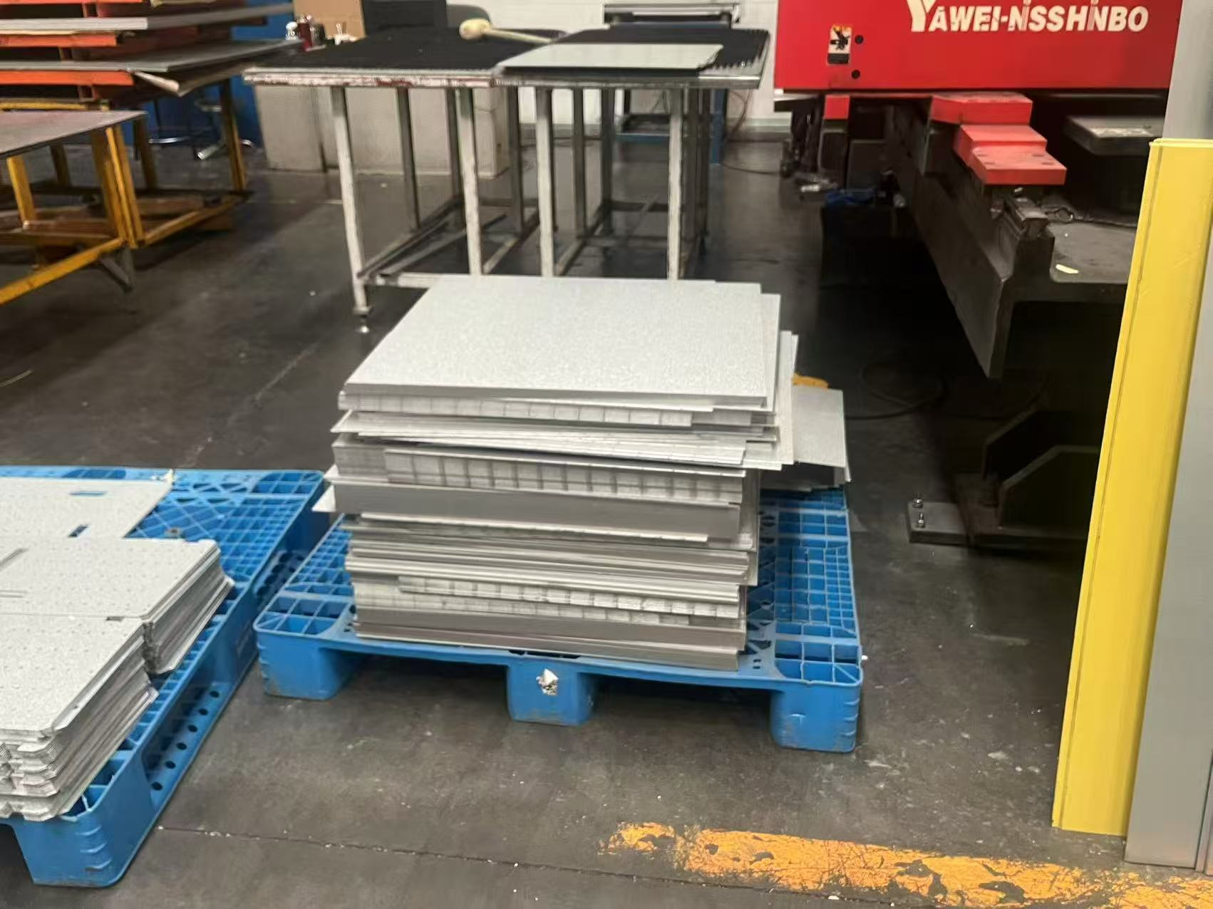 在KYN28柜的側(cè)板加工中,會產(chǎn)生900*440*2.0的覆鋁鋅板廢料約6.17kg,全年基本上只會對其中20%的部分進(jìn)行重新利用,剩余部分按報廢進(jìn)行回收處理;而KYN28柜母線室的后封板,目前由沖床按整版進(jìn)行排版加工,需要購買大量板材。通過對板材尺寸的收集,發(fā)現(xiàn)后封板的尺寸757*427*2.0正好在,側(cè)板的廢料尺寸900*440*2.0之內(nèi),通過使用小亞威機(jī)床可以實現(xiàn)使用側(cè)板的廢料加工后封板,對材料的利用率可提升到81.6%。
