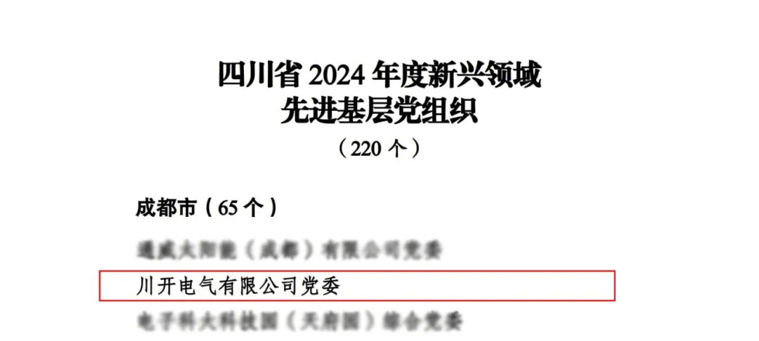 本次獲評(píng)有力彰顯了中共川開(kāi)電氣有限公司委員會(huì)銳意進(jìn)取、真抓實(shí)干的精神品質(zhì),充分肯定了公司黨委以黨建賦能企業(yè)卓越發(fā)展的生動(dòng)實(shí)踐。中共川開(kāi)電氣有限公司委員會(huì)將珍惜榮譽(yù)、再接再厲,積極發(fā)揮先進(jìn)基層黨組織的模范作用,在推動(dòng)四川的高質(zhì)量發(fā)展中不忘初心、牢記使命、創(chuàng)先爭(zhēng)優(yōu)、建功立業(yè),為黨和人民的事業(yè)作出新的更大貢獻(xiàn)。