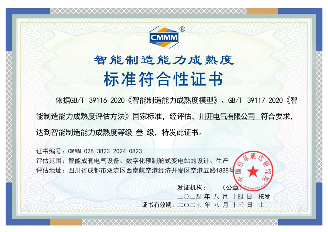 通過本次評估,代表著特銳德川開電氣在智能輸配電裝備制造行業(yè)智能制造建設(shè)方面進(jìn)入領(lǐng)跑賽道,也是對特銳德川開電氣多年來智能制造工作推進(jìn)的最好肯定。特銳德川開電氣也將以智能制造成熟度三級評估為契機(jī),依托自身經(jīng)驗和優(yōu)勢持續(xù)推進(jìn)智能制造建設(shè),始終貫徹落實國家戰(zhàn)略要求,以智能制造能力成熟度國家標(biāo)準(zhǔn)為指引,打造成為行業(yè)領(lǐng)先的數(shù)字化、智能化、綠色化智能制造標(biāo)桿工廠。