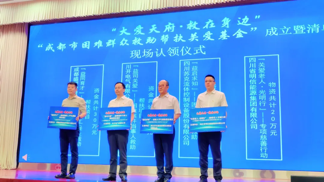 7?月?25?日,由成都市民政局發(fā)起的“成都市困難群眾救助幫扶關(guān)愛基金”正式啟動(dòng)。成都市相關(guān)部門負(fù)責(zé)人,各區(qū)(市)縣民政局主要負(fù)責(zé)人,愛心企業(yè)、社會(huì)組織、慈善組織、社工機(jī)構(gòu)、關(guān)愛援助中心等代表120余人參加。其中,特銳德川開電氣作為愛心企業(yè)受邀參加本次啟動(dòng)會(huì),特銳德川開電氣黨委書記、副董事長(zhǎng)邢志剛代表公司參加本次會(huì)議。