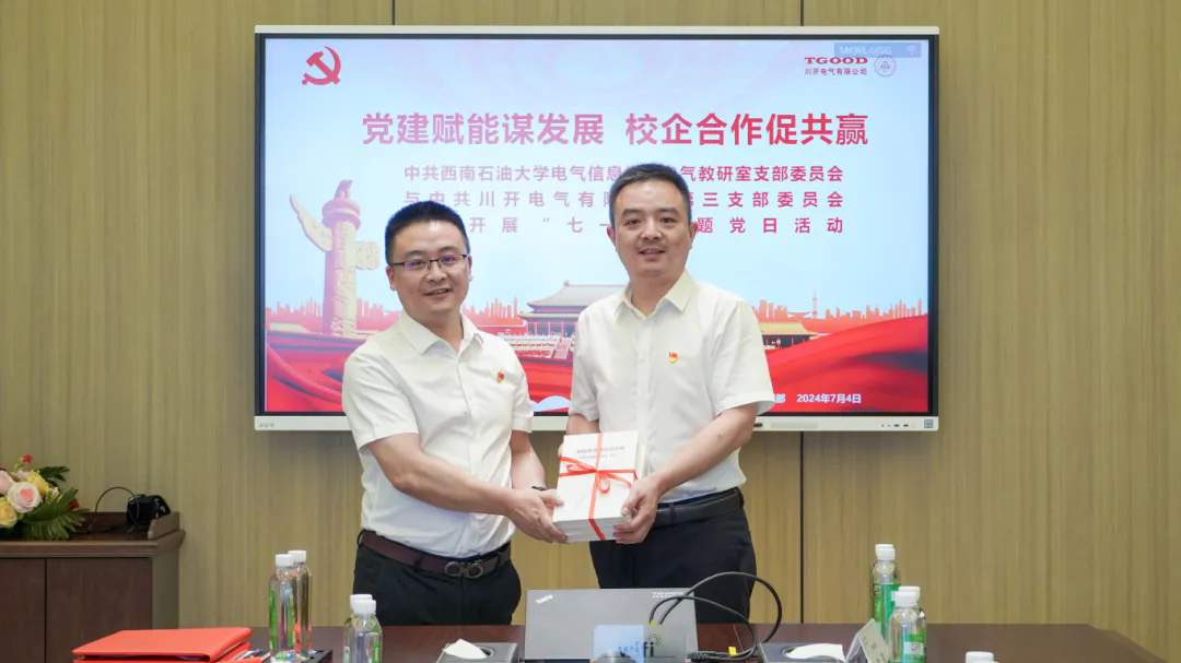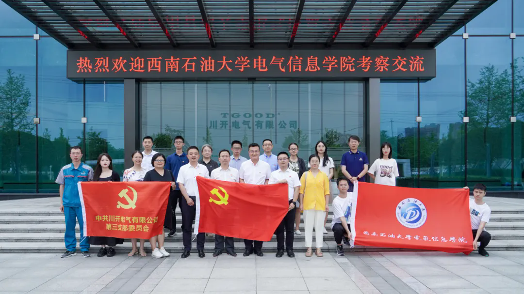 7月4日,中共西南石油大學(xué)電氣教工黨支部委員會與中共川開電氣有限公司第三支部委員會聯(lián)合開展“七一”主題黨日活動。西南石油大學(xué)電氣信息學(xué)院黨委書記、研究員李忠偉等西南石油大學(xué)電氣信息學(xué)院領(lǐng)導(dǎo)及師生,特銳德川開電氣黨委書記、副董事長邢志剛等公司領(lǐng)導(dǎo)及中共川開電氣有限公司第三支部委員會委員參加了本次活動。
