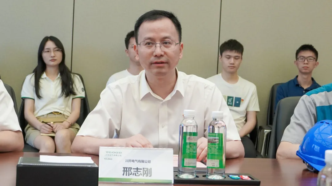 參觀后,全體人員進(jìn)入會議交流環(huán)節(jié)。特銳德川開電氣黨委書記、副董事長邢志剛在致辭中介紹了公司的業(yè)務(wù)板塊前景及發(fā)展趨勢,并表示希望與西南石油大學(xué)電氣信息學(xué)院在產(chǎn)學(xué)研方面共同探索就業(yè)實習(xí)、科研課題、平臺共建等更多領(lǐng)域的深入合作,通過校企協(xié)同發(fā)展縮短企業(yè)與學(xué)生之間的距離,實現(xiàn)校企高效銜接、互促共贏。