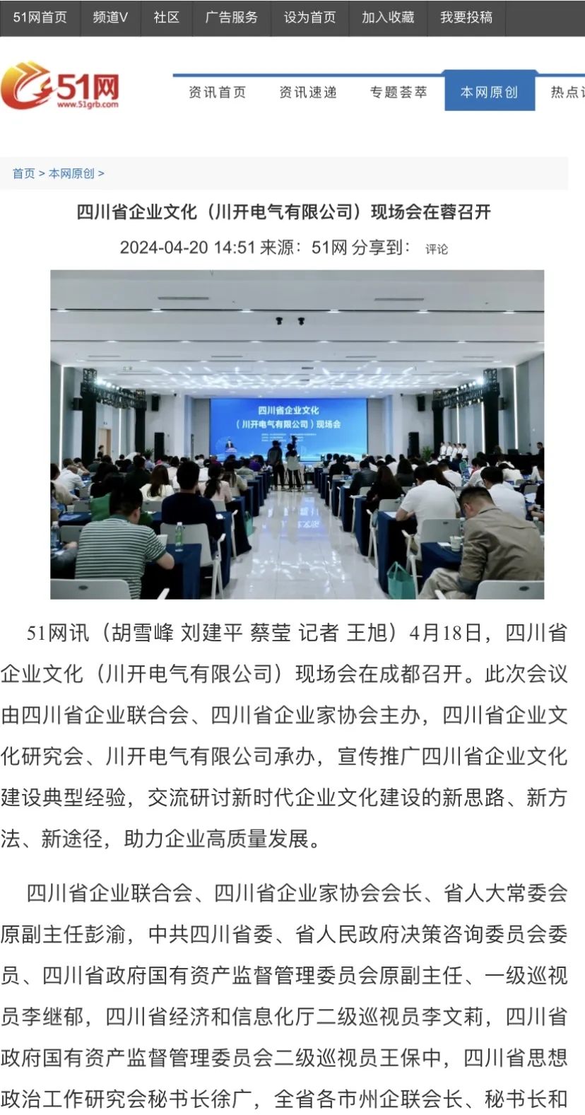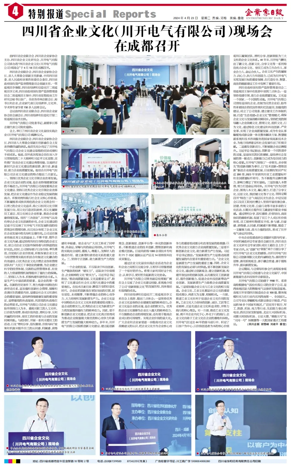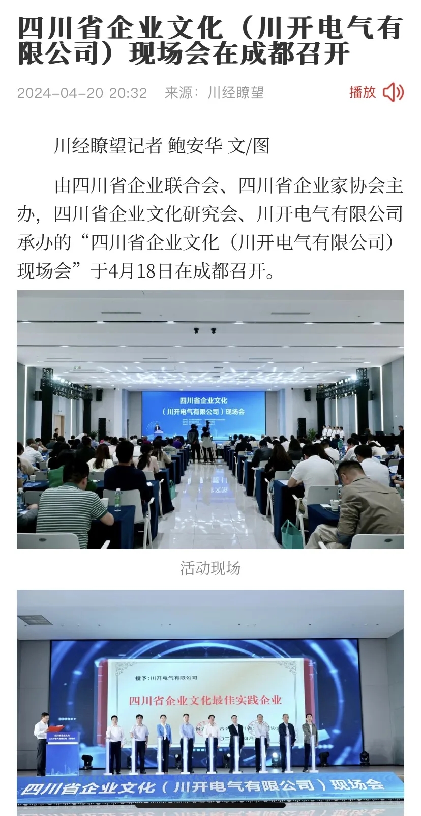 作為推進四川省企業(yè)文化建設(shè)與企業(yè)高質(zhì)量發(fā)展盛會,4月18日,四川省企業(yè)文化(川開電氣有限公司)現(xiàn)場會成功舉行。本次大會吸引了全國多家主流媒體宣傳報道,聚焦推廣四川企業(yè)文化“優(yōu)秀樣板”,取得了影響范圍廣、傳播熱度高等成效。