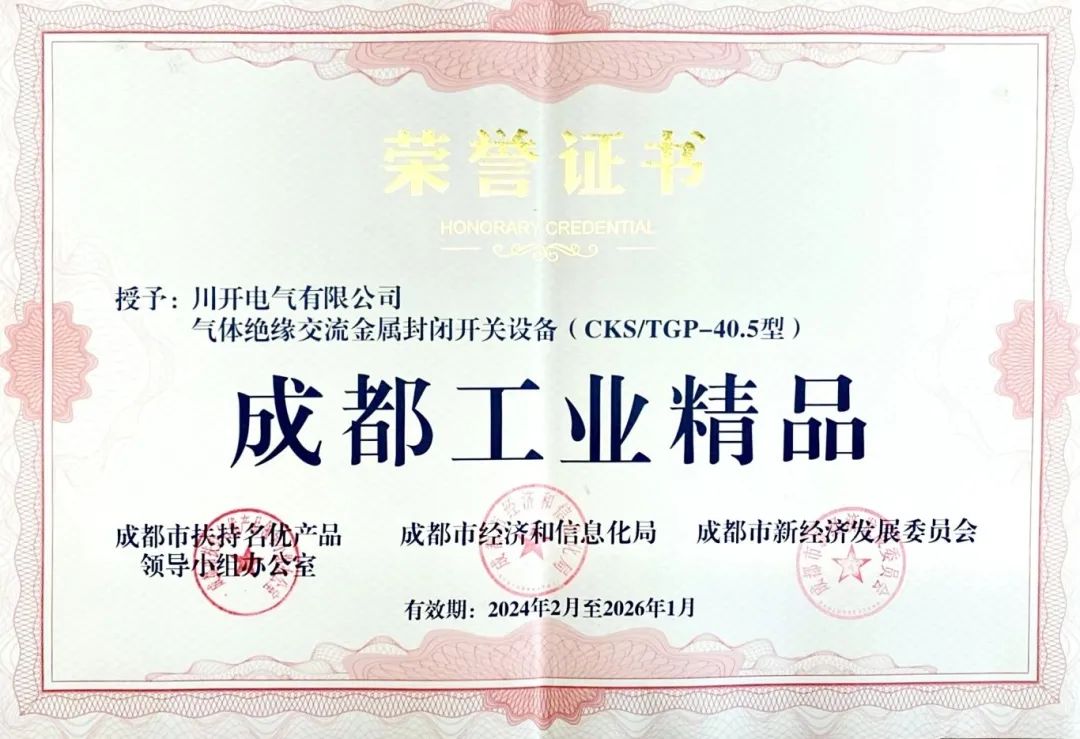 會上,100家企業(yè)的100個(gè)產(chǎn)品經(jīng)過層層篩選,被評選為“成都工業(yè)精品”,以“成都智造”新名片的名義正式面向全球發(fā)布,涵蓋5大支柱產(chǎn)業(yè)、14個(gè)重點(diǎn)產(chǎn)業(yè)鏈、17個(gè)細(xì)分賽道、4個(gè)制造業(yè)單項(xiàng)冠軍以及41個(gè)國家級“專精特新”小巨人企業(yè)。其中,特銳德川開電氣的氣體絕緣交流金屬封閉開關(guān)設(shè)備(CKS/TGP-40.5型)入選第一批“成都工業(yè)精品”名單并正式榮獲授牌。