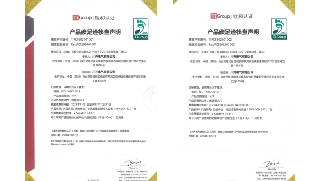 近日,特銳德川開電氣主營產(chǎn)品KYN28A-12、BLOKSET、MNS2.0、SIVCON 8PT經(jīng)過第三方權(quán)威機構(gòu)的審核和認證,成功取得了產(chǎn)品碳足跡證書。