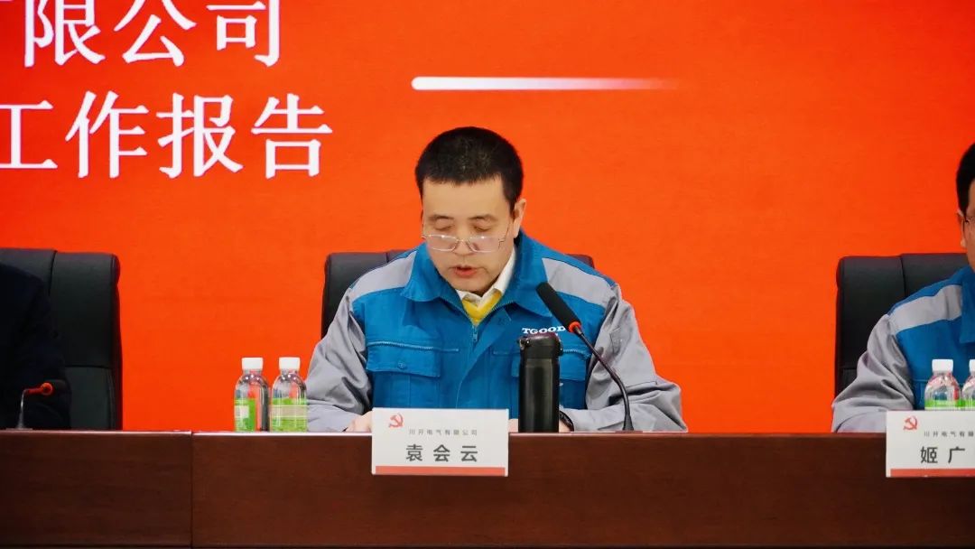 大會在全體到會人員奏唱中華人民共和國國歌中開幕。中共川開電氣有限公司第一屆委員會書記、特銳德川開電氣副董事長袁會云代表第一屆黨委作中共川開電氣有限公司第一屆委員會作工作報告,從要素配置、專項學習、創(chuàng)先爭優(yōu)、干事工作、文化引領(lǐng)等方面全方位回顧了第一屆委員會工作,總結(jié)了過往工作的經(jīng)驗與不足,提出今后工作的意見與建議,鼓勵全體黨員以實現(xiàn)企業(yè)永續(xù)發(fā)展、基業(yè)長青為己任,大力弘揚企業(yè)精神,迎接新挑戰(zhàn),為建設(shè)卓越一流企業(yè)而努力奮斗。