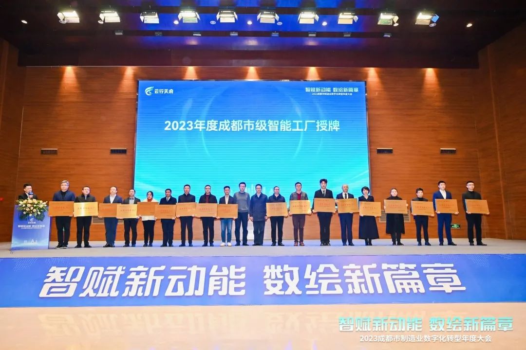 1月5日,由成都市經(jīng)信局市新經(jīng)濟委指導、成都市工業(yè)互聯(lián)網(wǎng)發(fā)展中心主辦的“智賦新動能? 數(shù)繪新篇章”2023成都市制造業(yè)數(shù)字化轉(zhuǎn)型年度大會在蓉召開。大會旨在總結(jié)交流制造業(yè)智能化改造數(shù)字化轉(zhuǎn)型的經(jīng)驗做法,特銳德川開電氣受邀參加本次大會并正式榮獲2023年度成都市智能工廠授牌。