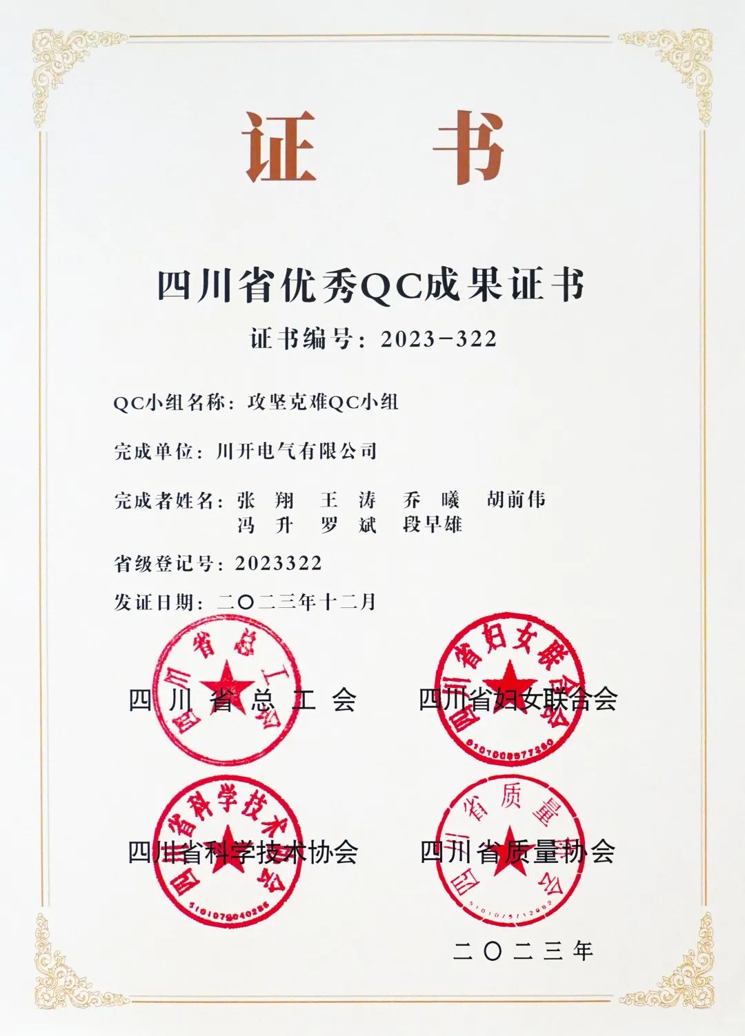 通過本次QC活動,著力解決了互感器、電纜安裝困難等痛點難題,大幅度提高工作效率,極大地提升了用戶現(xiàn)場安裝體驗,并穩(wěn)步提高了人員的標準化意識與技術質量問題綜合解決能力。此次證書的榮獲,標志著對特銳德川開電氣技術攻關能力的認可,同時代表著特銳德川開電氣聚焦產品質量,以高效具體的行動持續(xù)優(yōu)化產品方案與細節(jié),充分展現(xiàn)行業(yè)領先、品質過硬的核心競爭力。