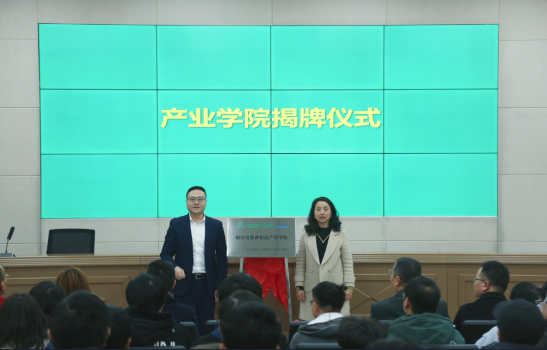 成都紡織高等專科學(xué)校黨委常委、紀(jì)委書記張江嬰和特銳德川開電氣副總經(jīng)理張愛寶共同為產(chǎn)業(yè)學(xué)院揭牌。會議選舉學(xué)校副校長宋超為輸配電裝備制造產(chǎn)業(yè)學(xué)院理事會理事長,特銳德川開電氣副總經(jīng)理張愛寶、施耐德電氣總監(jiān)許屾為理事會副理事長,并選舉出理事會成員。會議研究確定了丁韜為產(chǎn)業(yè)學(xué)院院長,何依、李忠炳為副院長。