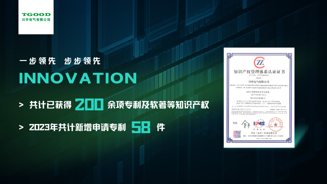作為國家知識(shí)產(chǎn)權(quán)優(yōu)勢(shì)企業(yè),特銳德川開電氣始終堅(jiān)持以科技創(chuàng)新為引領(lǐng),建立“一步領(lǐng)先、步步領(lǐng)先”的創(chuàng)新戰(zhàn)略體系,在技術(shù)研發(fā)方面奠定了斐然成就。截止目前,特銳德川開電氣共計(jì)已獲得200余項(xiàng)專利及軟著等知識(shí)產(chǎn)權(quán),2023年通過預(yù)裝式變電站、智能開關(guān)柜等產(chǎn)品的技術(shù)創(chuàng)新共計(jì)新增申請(qǐng)專利58件,獲得授權(quán)29件,其中新增發(fā)明專利4件。
