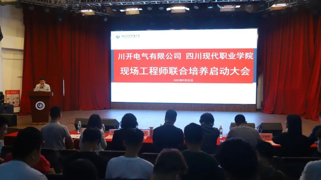 9月25日,特銳德川開電氣與四川現(xiàn)代職業(yè)學院共同舉辦的智能配電裝備制造現(xiàn)場工程師聯(lián)合培養(yǎng)項目順利啟動。特銳德川開電氣副總經(jīng)理張愛寶,四川現(xiàn)代職業(yè)學院事業(yè)發(fā)展部部長唐建華及學校相關(guān)領(lǐng)導、教師代表、學生代表參加了啟動儀式。