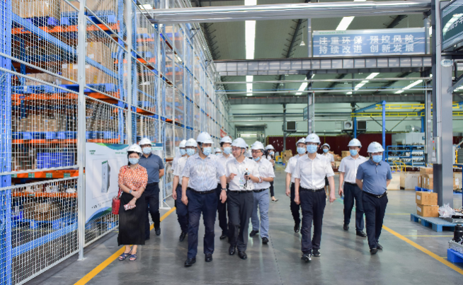 羅強(qiáng)副省長(zhǎng)一行在公司總經(jīng)理邢志剛等陪同下首先參觀了川開(kāi)電氣智慧工廠,了解川開(kāi)電氣在輸配電領(lǐng)域產(chǎn)品與預(yù)裝式變電站、綜合能源等領(lǐng)域的創(chuàng)新成果,并現(xiàn)場(chǎng)參觀箱變車間、充電樁、寄售式立體倉(cāng)庫(kù)、KYN28產(chǎn)線、二次下線、普瑪寶柔性加工區(qū)、綜合能源管理系統(tǒng)展示和預(yù)制艙模塊化變電站,對(duì)公司在產(chǎn)品創(chuàng)新和智慧工廠建設(shè)方面取得的成就給予高度評(píng)價(jià)。