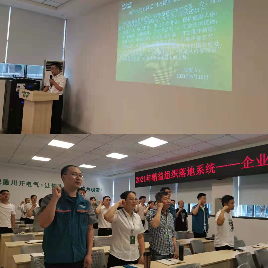 為深入貫徹中紀(jì)委十九屆五次會(huì)議精神、認(rèn)真落實(shí)特銳德集團(tuán)公司廉政從業(yè)相關(guān)工作要求,川開電氣有限公司于2021年6月10日下午召開廉潔從業(yè)警示會(huì)議,公司中高層領(lǐng)導(dǎo)及關(guān)鍵崗位戰(zhàn)友參加會(huì)議。