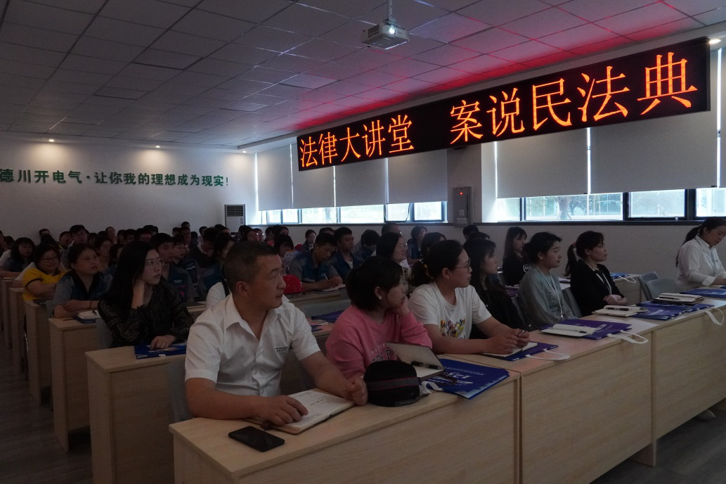 2021年1月1日《中華人民共和國(guó)民法典》正式實(shí)施,在中國(guó)共產(chǎn)黨成立100周年之際,為提高川開(kāi)電氣員工法律意識(shí),大力弘揚(yáng)法律精神,2021年5月20日下午15:45,法律大講堂走進(jìn)川開(kāi)電氣。本次培訓(xùn)特別邀請(qǐng)四川蜀航律師事務(wù)所黨支部書(shū)記、副主任律師、合伙人侯炎先生為大家?guī)?lái)實(shí)用法律知識(shí),川開(kāi)電氣共60余人參加此次培訓(xùn)。