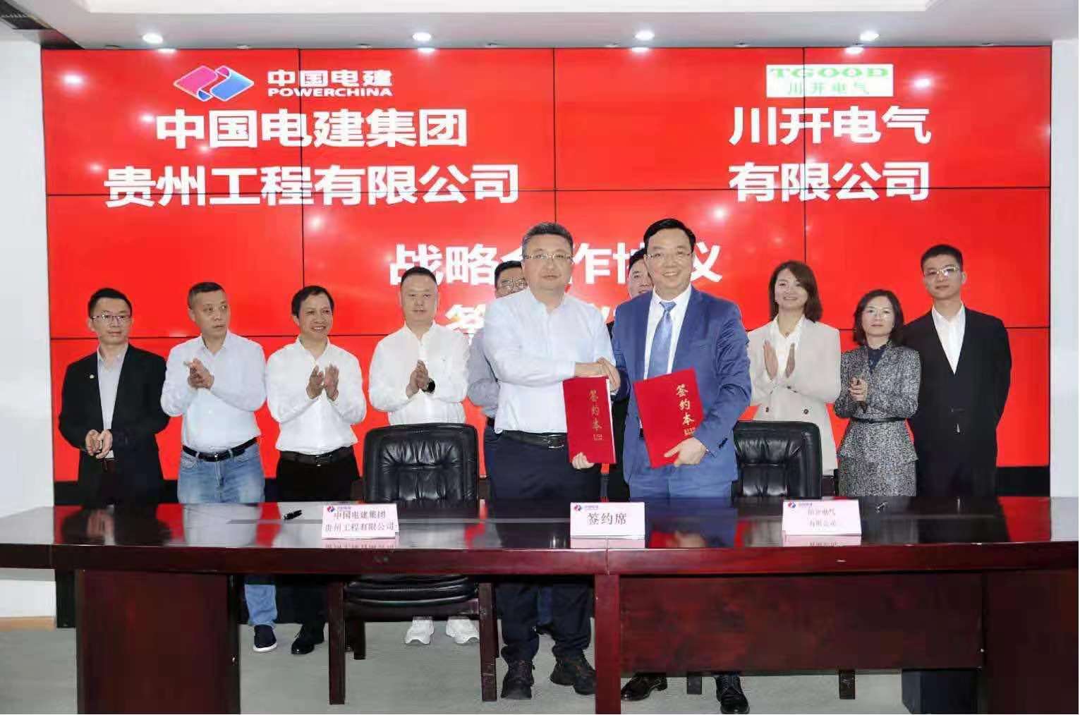 4月24日,川開電氣有限公司(以下簡稱我司)與中國電建貴州工程公司(以下簡稱貴州工程公司)戰(zhàn)略合作協(xié)議簽約儀式在貴陽貴州工程公司舉行。雙方本著“誠信合作、優(yōu)勢互補、互利共贏、共同發(fā)展”的基本原則,達成戰(zhàn)略合作伙伴關(guān)系。公司董事長李軍,貴州工程公司黨委書記郭瑋,副總經(jīng)理余豪出席簽約儀式。
