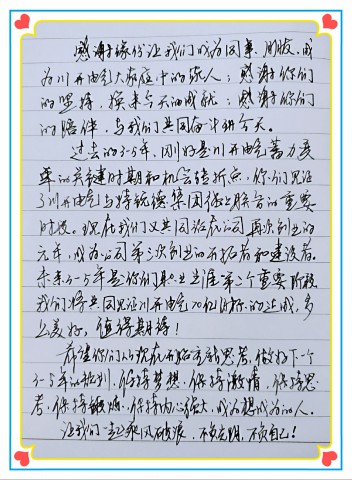 ??? “我叫***,來川開電氣*年了,現(xiàn)從事**工作……”,本次活動在奮斗者的成長感悟視頻中拉開了序幕。大家回顧了自己的成長歷程:從校園到社會,從學(xué)生到職場人士,有過淚水和歡笑,有過迷茫和憧憬,有過遺憾和收獲,感恩一路走來悉心指導(dǎo)的領(lǐng)導(dǎo),感恩一直相伴不離不棄的戰(zhàn)友。大家堅信:三次創(chuàng)業(yè)、一路同行、共創(chuàng)共贏!