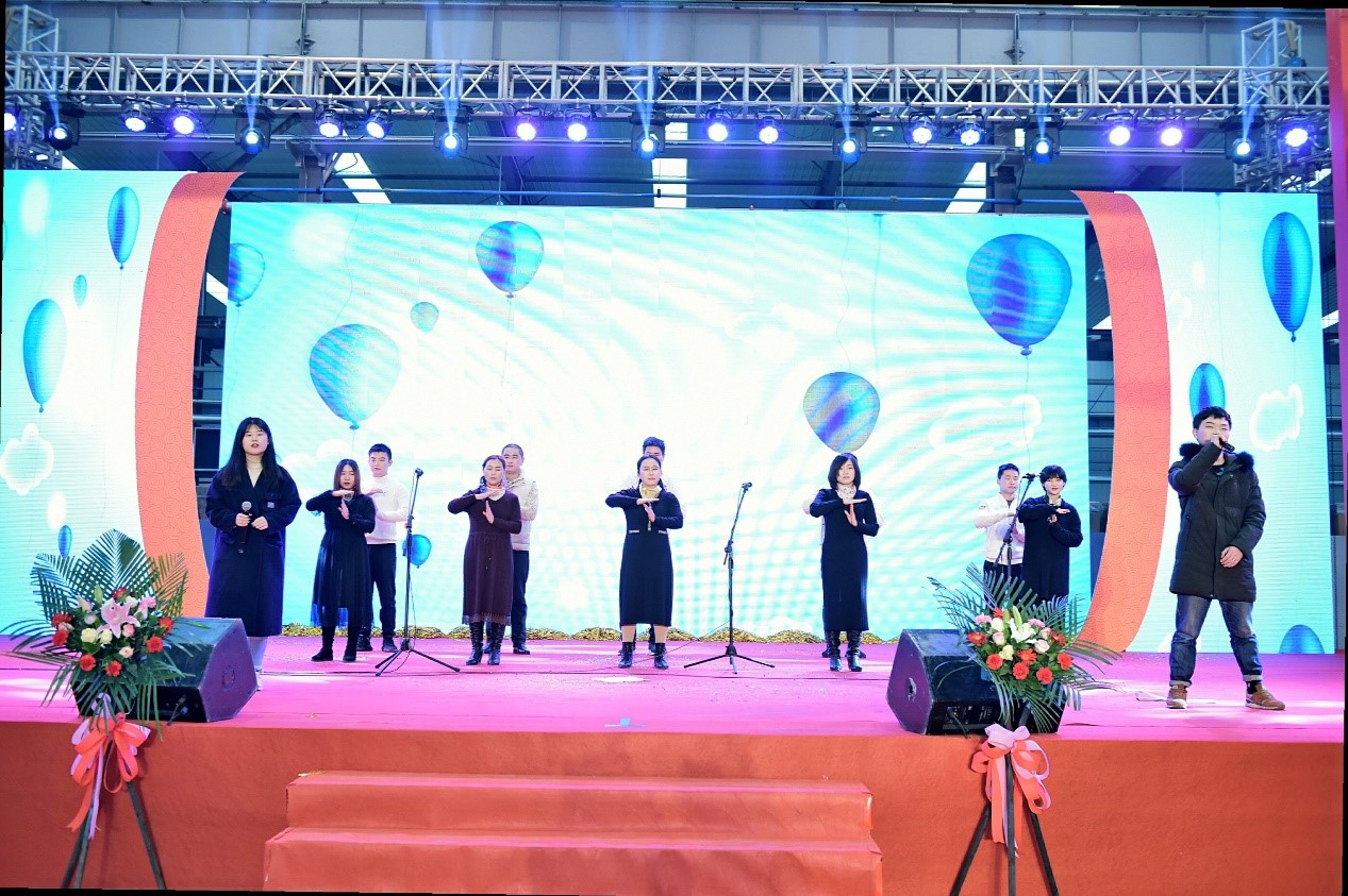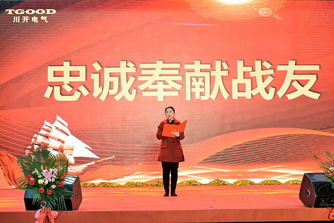 在川開電氣副總經(jīng)理楊莉女士帶領(lǐng)全體戰(zhàn)友誦讀企業(yè)文化中,我們的團拜會正式拉開了帷幕。