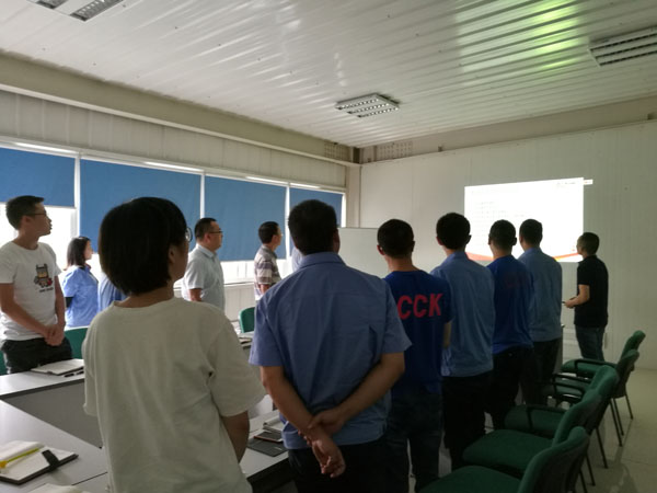 工業(yè)工程部部長韋斌闡述了精益的意義和目標,強調在場的每一個人都是精益的一份子,要齊心協(xié)力,發(fā)揮集體的智慧,朝著同一個目標奮斗!實施組組長喻光泉提出了對項目組的展望:(1)產品達到共線要求;(2)能做到不同產品快速切換;(3)打造連接整個工序的產線;(4)打造柔性的產線,連接MES系統(tǒng)。隨后特銳德工業(yè)工程中心IE工程師郝曉鵬對項目的開展思路和方法進行了講解,堅信我們在清晰的推進思路和強大的組織保障下,能實現打造柔性化、節(jié)拍化的連續(xù)流產線。