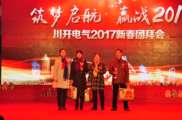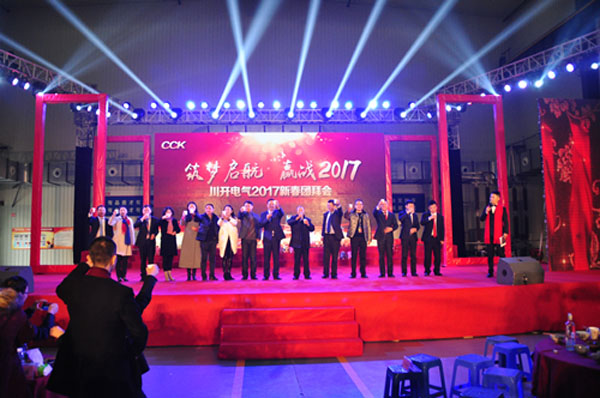 在《相親相愛》樂曲中,川開電氣董事長簡興福先生及公司領導舉起吉祥祝福的美酒為“川開電氣2017年新春團拜會”劃上了圓滿的句號。這濃濃的年味凝聚著川開人最真摯的情感,碰杯的脆響堅定著川開大家庭和睦、團結,凝聚著力量!